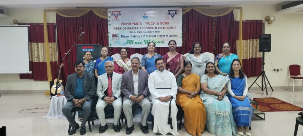 YMCA/YWCA WEEK OF PRAYER: The inaugural worship service for the World Week of Prayer 2025 was organised by YMCA, YWCA and SCMI on 9th November 2025 at YMCA Bangalore. The theme- “Prayer as Jubilee,” was explored through a message delivered by Rev. Jacob P. Thomas, a professor at U.T.C, Bangalore and Dept. of Mission and Ecumenism. Approximately 100 attendees participated in the service.