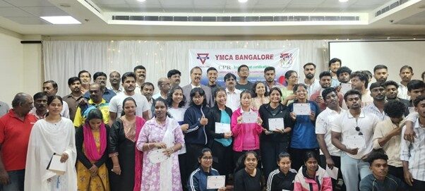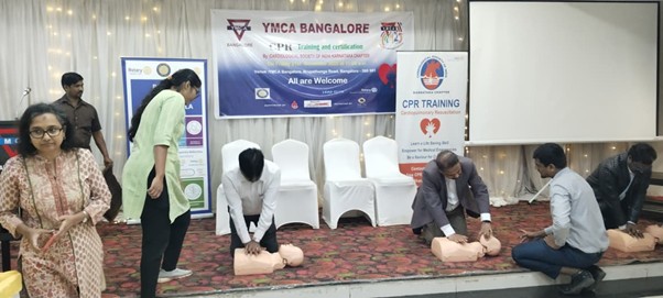The YMCA Bangalore organized a “CPR Training and Certification” programme on 21st November 2025 at 11:00 a.m., at YMCA, Nrupathunga Road. This initiative was proposed by Rev. Dr. P. Sethu, President of YMCA Bangalore, and conducted by the Cardiological Society of India, Karnataka Chapter. It received support from Rotary Bangalore Peenya, Lions Club, Sun Pharma, and Making India Heart Strong. Approximately 100 participants attended the training, acquiring essential skills, and all attendees were awarded certificates.